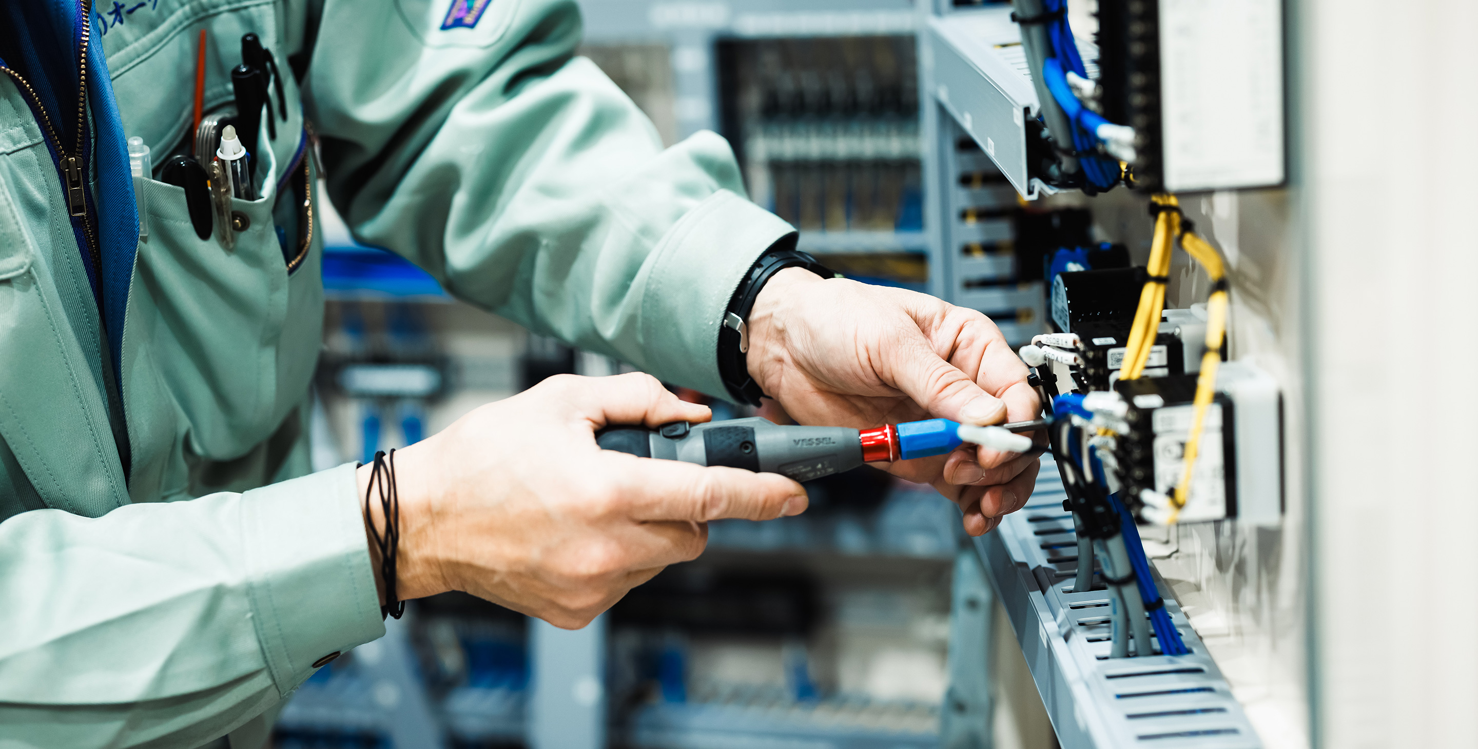 私たちが手がけるのは、製造工場に欠かせない自動機の電装工事です。